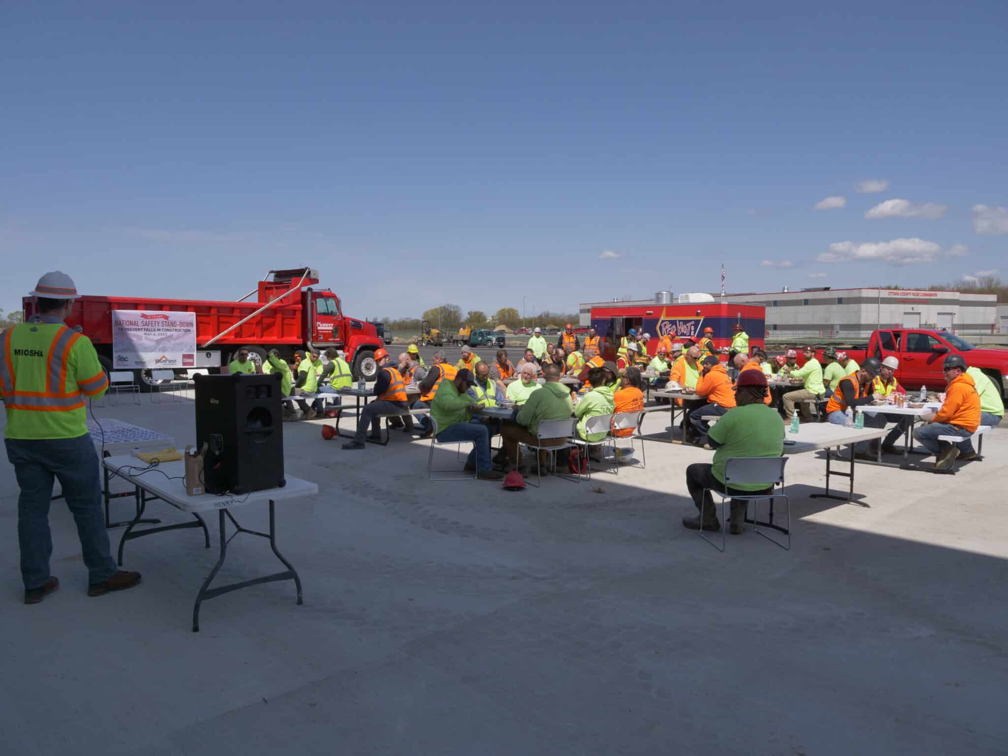COOPERSVILLE, May 4, 2023 — Pioneer Construction, Highpoint Electric, and ABC Western Michigan held a Safety Stand-Down event in partnership with the Michigan Occupational Safety and Health Administration (MIOSHA).